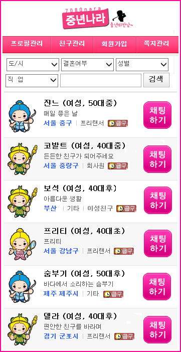 중년나라 4050 채팅 어플 다운로드